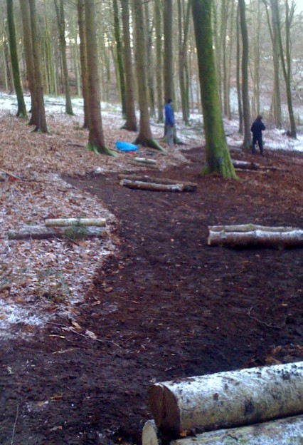 Quick post to say a massive thanks to Dan, Juliet, Mark and Pete for their work all day (on the 25m of East 17 singletrack we completed), and everyone who came across for the last hour to chop and move wood for marking - given the conditions it was brilliant to see 13 people out for the dig day.
