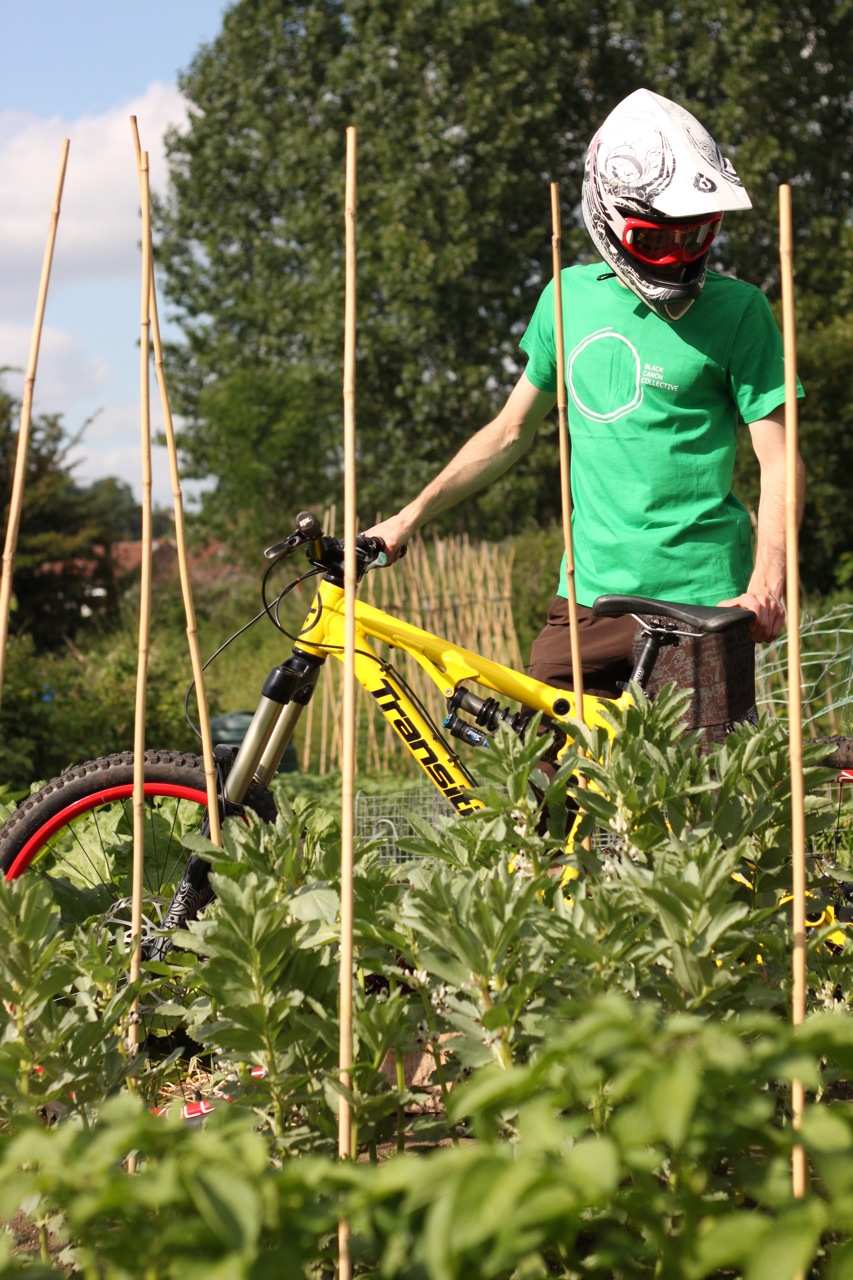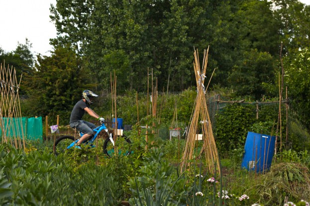 So, anyway, before throwing ourselves down any massive mountains we thought we'd take them down the Allotment for a thrash about and some pics... (click 'em to make 'em bigger)