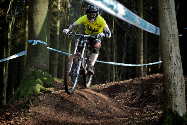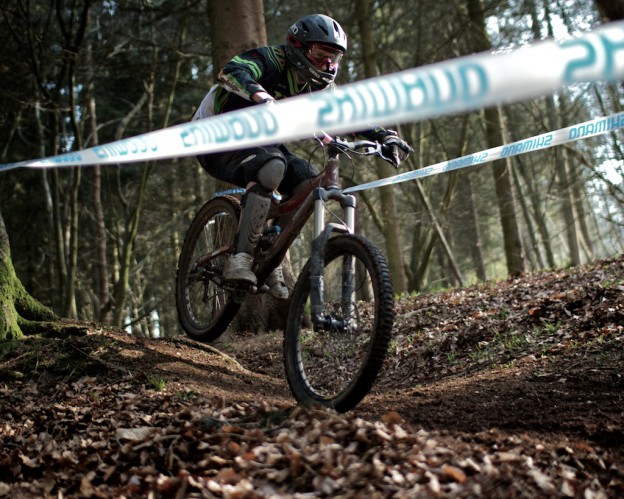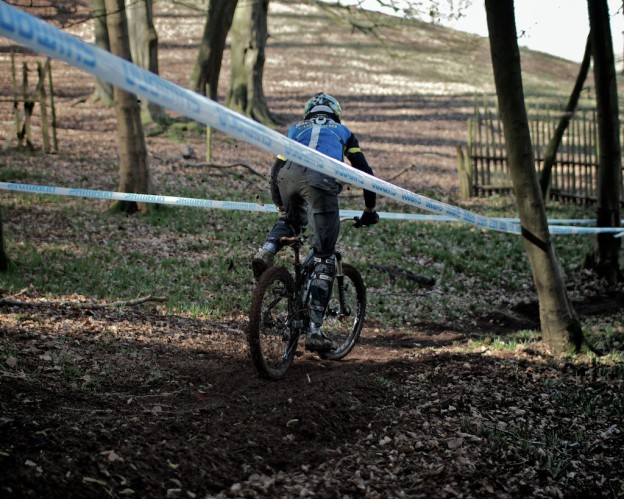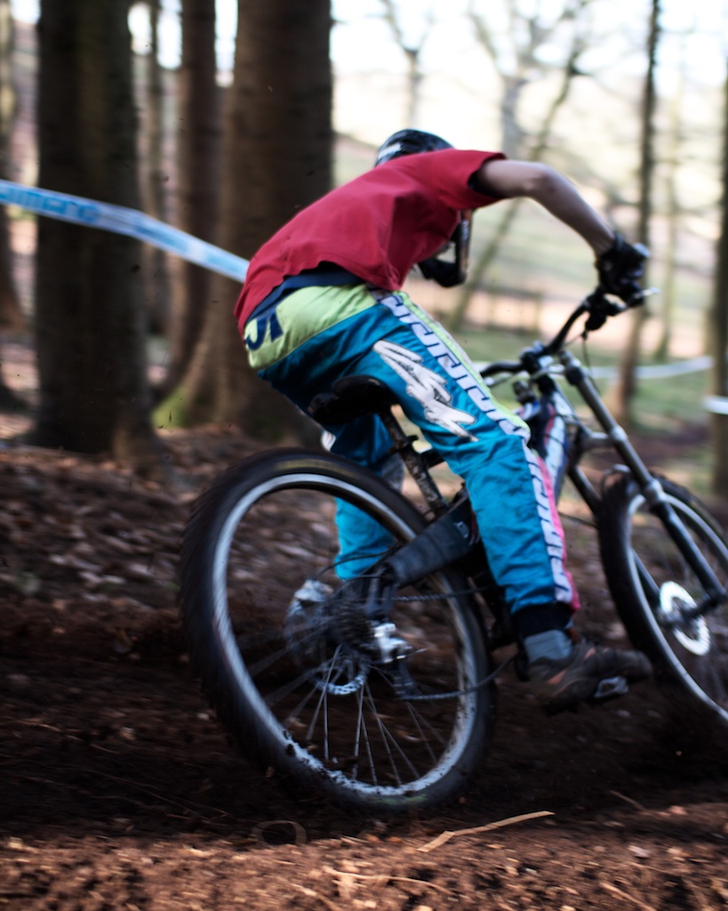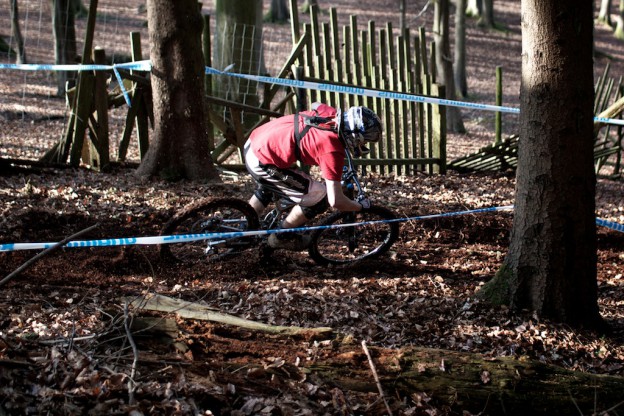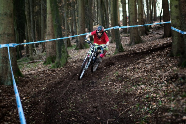 Sunday's race was a bit special, firstly it was themed a Retro Race, and secondly it was the last in the winter series, meaning that final standings and pride were at stake. The track was different from anything else we've raced so far, although it shared about 40meters of BBMS the two couldn't be further appart in terms of flow or feel. Based on MCC (the Dinner 'til Dusk descent) the track was marked wide to encourage line choice, and drawn out to make pedalling a necessity. With no real features to speak of we were pleased to be able to allow riders with open face helmets meaning that the event was accessible to many who otherwise wouldn't have take part. A featureless track may sound a bit tedious, especially one with no bermed corners on a track that consisted of a wide loamy channel, but I can honestly say that it generated some of the most fun riding and close racing we've had all series.