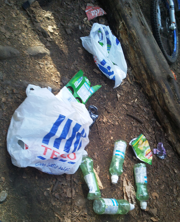 I notice that it’s a similar story all over the forest, actually. On or near to ‘trails’ there is a staggering amount of litter (eg ‘Doodles’). I can almost guarantee it’s not BCC members dropping it all, but I’m nonetheless tempted to ride round with an empty rucksack and collect as much as poss. Would anyone join me in a litter patrol one day??