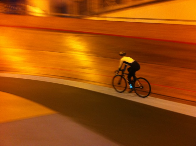 I love the Velodrome. However, nausea set in rather quickly while descending the curves – go figure!! I put it down to all the cold medicine is socked down before riding:)