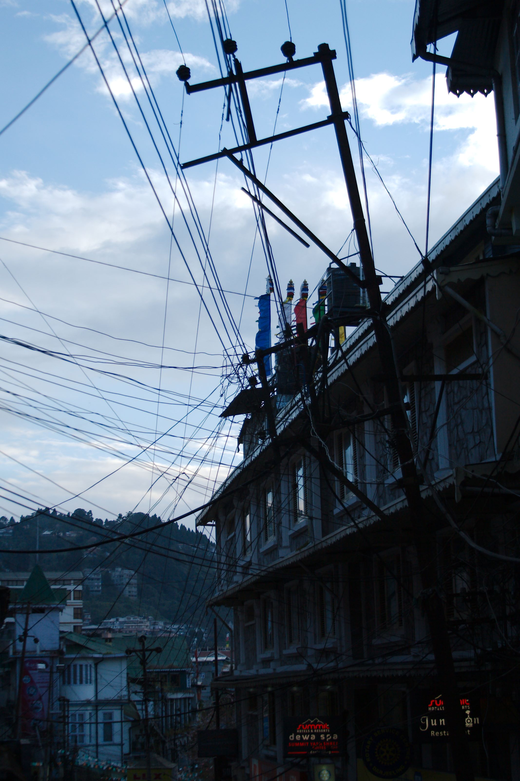 Clearly it wasn’t going to stop soon, so head down and get a lick on, least that’s what me and Mike (who organised things) thought, after 20mins of hail so thick it made any progress impossible we stopped and waited for the others to catch up. Then we waited some more – by which time I was beyond cold, no choice but to head back and find them, we turned around and rode back along what was now a boiling torrent of a river, the others had stopped at a small temple, I was so cold that hypothermia was kicking in, so dispensing with formalities and in finest anglo saxon told them I’m off to Darjeeling, they can suit themselves. We were only a couple of hours from Darj, but that was a long two hours. I’ll never moan about being cold again.